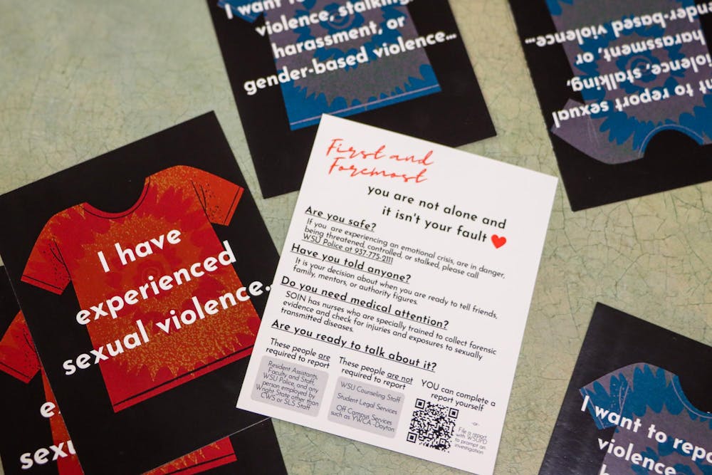 Resources for attendees spread out on a table at the Denim Day event Alexander Roberts